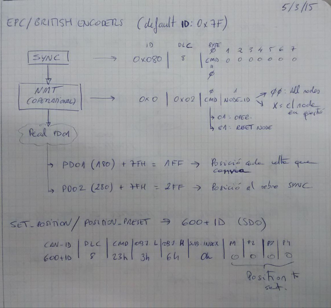 - Clase EpcMaCanOpen.* maneja NMT/SDO/PDO básicos para estos encoders (IDs TPDO1 0x180+ID, TPDO2 0x280+ID).