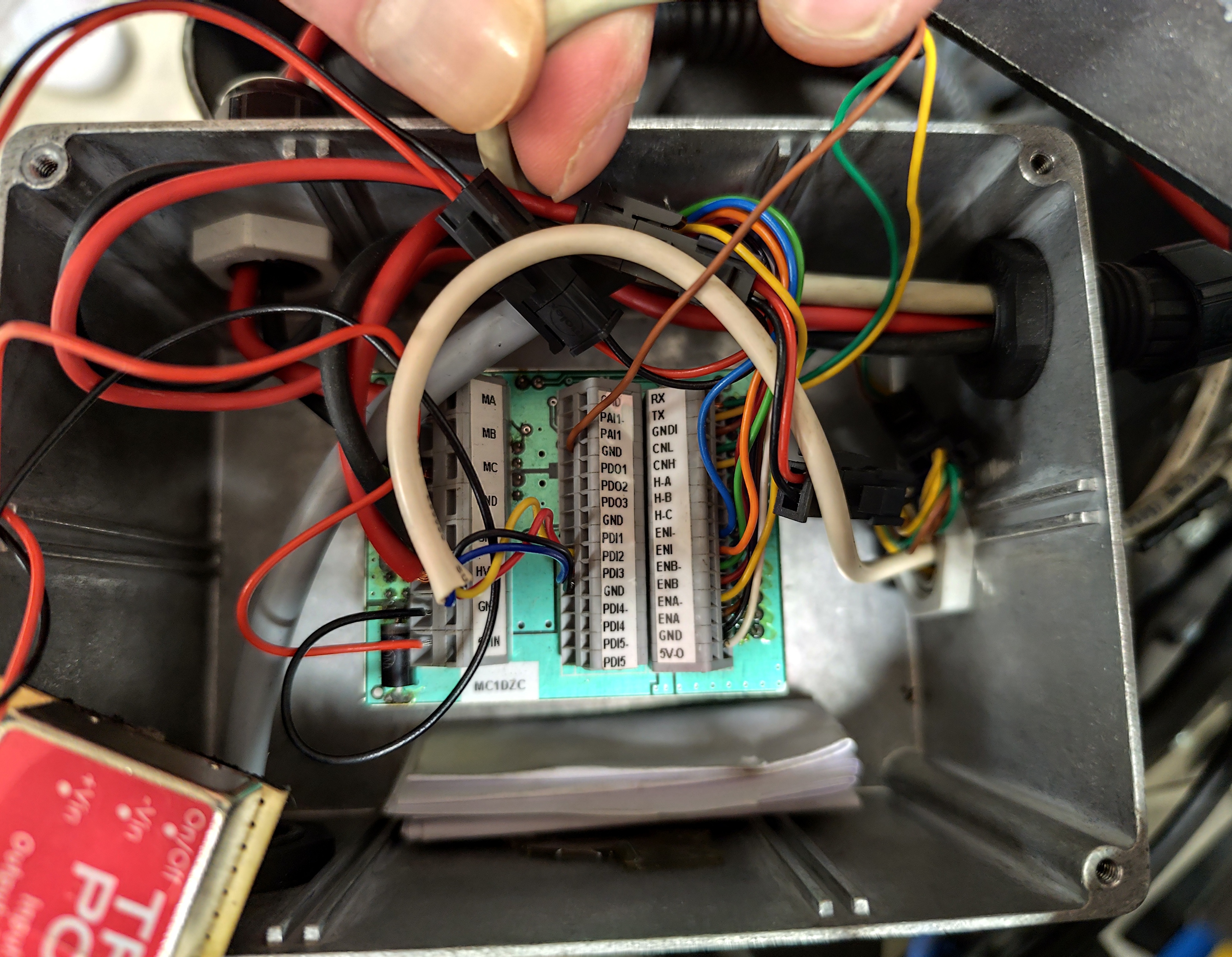 La caja del steering controller tiene varios cables de entrada y salida estos se resumen en 4 grupos: