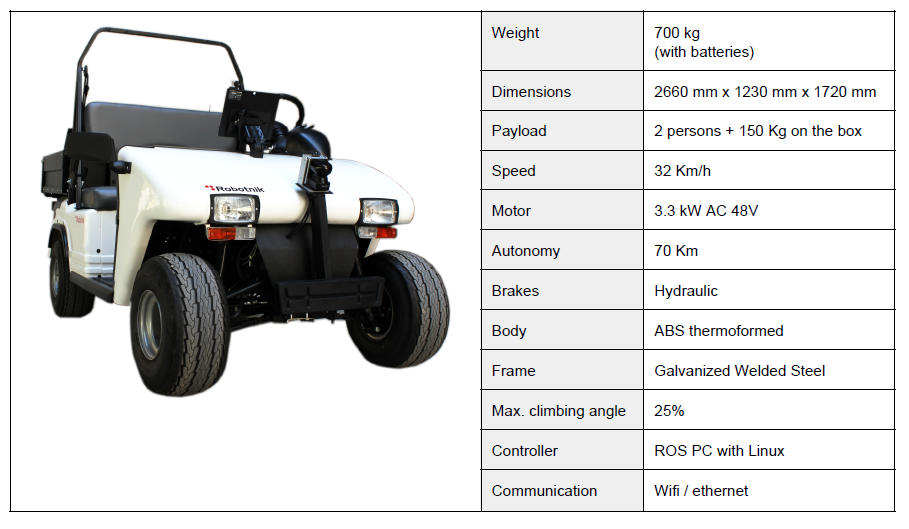 Este es el modelo antiguo del RBCar de Robotnik. Este fue adquirido ya hace unos años por el AI2 para los proyectos IDEMOV, IDECONA IDECONA AI2. El grupo de trabajo CO3 UPV ahora ha heredado este coche.